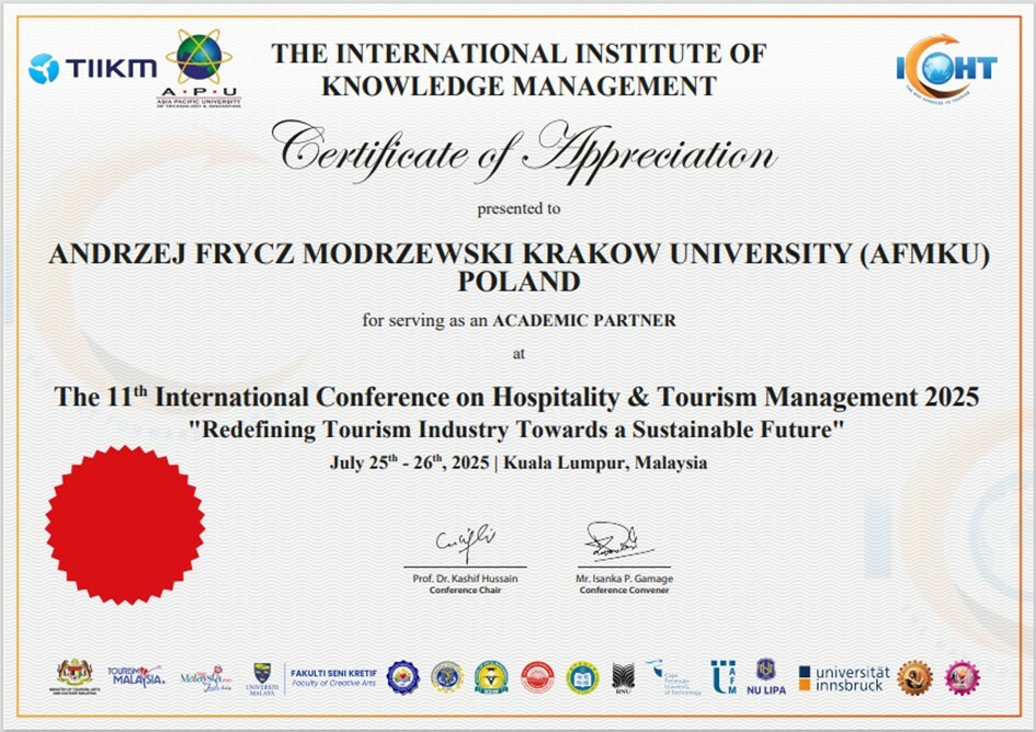 Uniwersytet Andrzeja Frycza Modrzewskiego partnerem ICOHT 2025. Wydział Zarządzania, Mediów i Technologii z mocnym akcentem eksperckim Uniwersytet Andrzeja Frycza Modrzewskiego był partnerem akademickim prestiżowej międzynarodowej konferencji ICOHT 2025 w Kuala Lumpur. Wydział Zarządzania, (...)